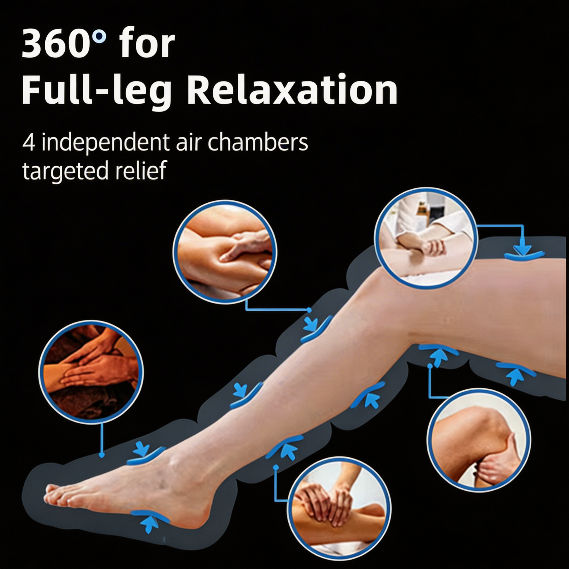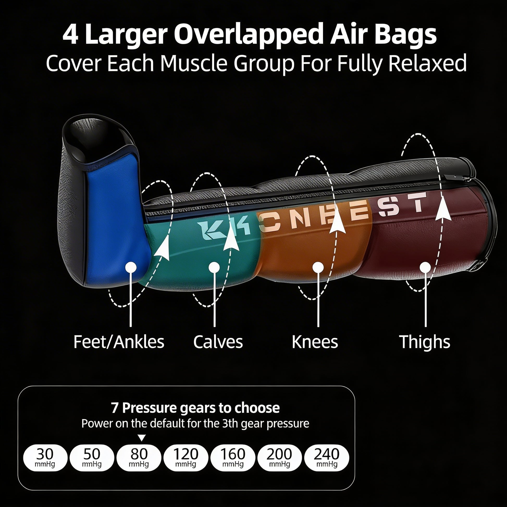 AIR PRESSURE COMPRESSION — FLUSH - Sequential pneumatic pressure works from the foot upward through the leg, mimicking the body's natural circulation to push out lactic acid and reduce swelling fast.